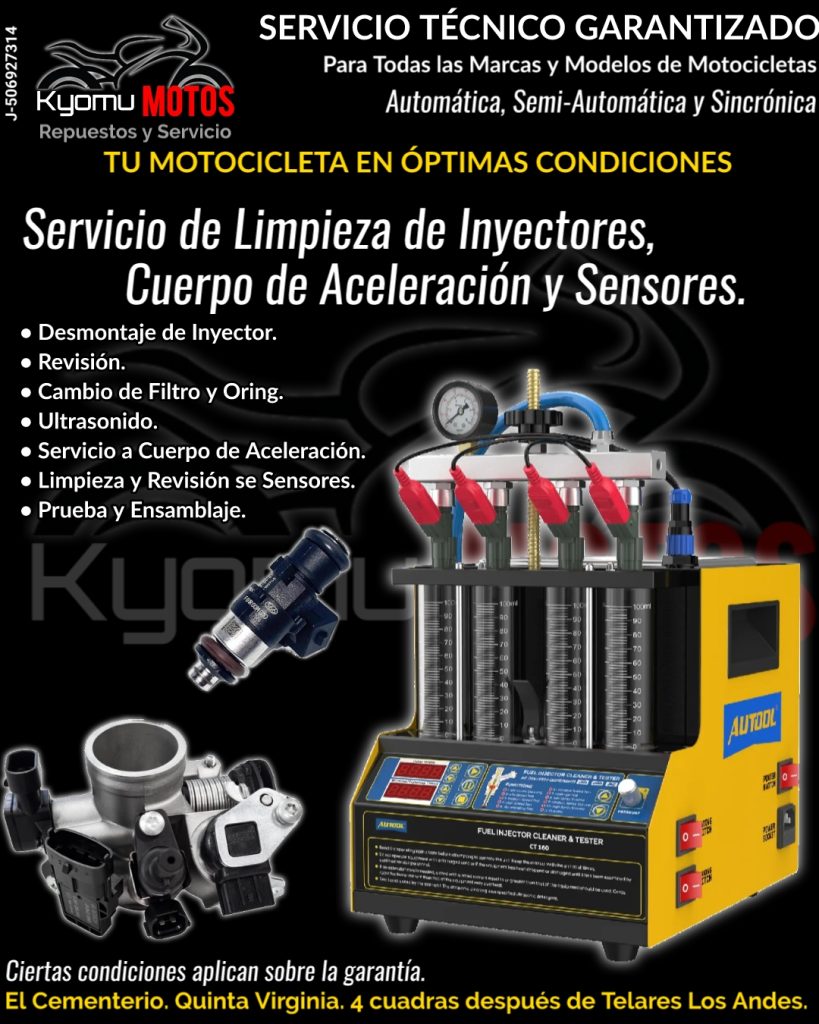 Tipo de Requerimiento: Servicio Premium de Mantenimiento y Ajuste GeneralSólo Mantenimiento de Rolineras y EjesRevisión Mecánica y DiagnósticoRevisión Eléctrica y DiagnósticoAjuste de VálvulasRevisión de Caja de CambiosCambio de Kit de ArrastreCambio de Pastillas y/o Bandas de FrenoCambio de Mando de LucesCambio de Mando de EncendidoCambio de Guaya de AceleraciónCambio de Guaya de CloutchCambio de Guaya de Freno DelanteroCambio de Guaya de Freno TraseroCambio de Pistas o TazasMantenimiento de BastonesCambio de MonoshockLimpieza de Tanque de GasolinaCambio de Ramal EléctricoInstalación de Faros Auxiliares con Sistema de ProtecciónInstalación de Luces DireccionalesInstalación de AlarmaInstalación de AccesoriosLimpieza de CarburadorLimpieza de Inyector y Cuerpo de Aceleración (Sólo para Motocicleta Full Injection)Revisión, Prueba o Cambio de BujíaEscaneo o Diagnosis Electrónica (Sólo para Motocicleta Full Injection)Revisión y Diagnóstico de MotorPARA MOTO AUTOMÁTICA. Revisión o Cambio de RuleraPARA MOTO AUTOMÁTICA. Revisión o Cambio de RulosPARA MOTO AUTOMÁTICA. Revisión o Cambio de CrocheraPARA MOTO AUTOMÁTICA. Revisión o Cambio de Correa